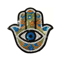 Protección y brillo en un solo diseño ✨ Este parche bordado con lentejuelas representa la Mano de Fátima, símbolo de buena suerte y energía positiva. Perfecto para decorar camperas, remeras o bolsos con un toque espiritual y artesanal.